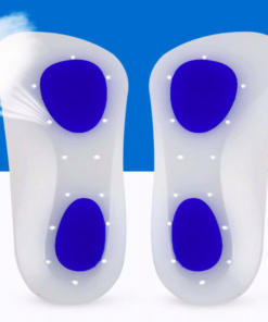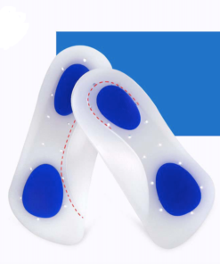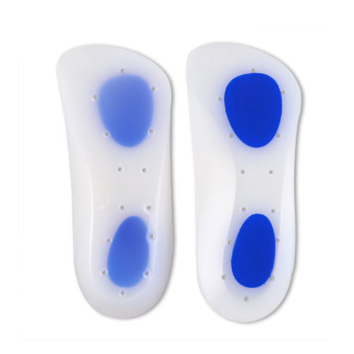 Dubbel densitet, helsilikoninlägg med blåa accenter på hälen och framfoten. Perforerat design för naturlig luktupptagning och bekväm luftcirkulation, vilket ger lindring för förhårdnader, liktorn, metatarsalben, plantar fasciit och mer. Perfekt för utomhussporter, löpning, shopping och längre promenader.